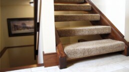 To soften all of the natural stone and porcelain surfaces, we broke up certain rooms with a luxurious Tuftex carpet. Tuftex, by Shaw, is known for its durability and longevity. Because of its built in stain & oder fibers & soft backing, it continues to be a premier choice for residential spaces. The stairs and great room were designed with the style, Sterling Heights, in color – Sun Kiss, a low pile textured plush carpet with flecks of brown and beige.